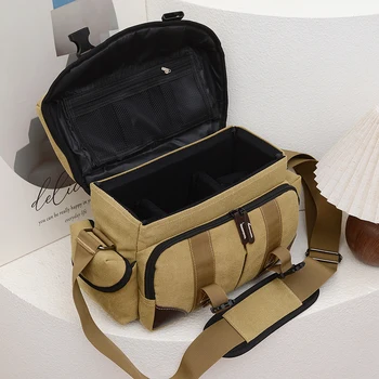 Custom Vintage Khaki Canvas 2 in 1 Portable Crossbody Digital Camera Video Bag