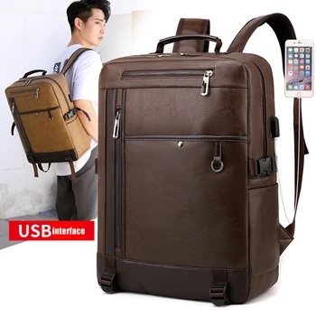 Unisex Executive Backpack USB Charging Port Men's Pu Leather Waterproof Business Laptop Backpack Office School Bags Polyester